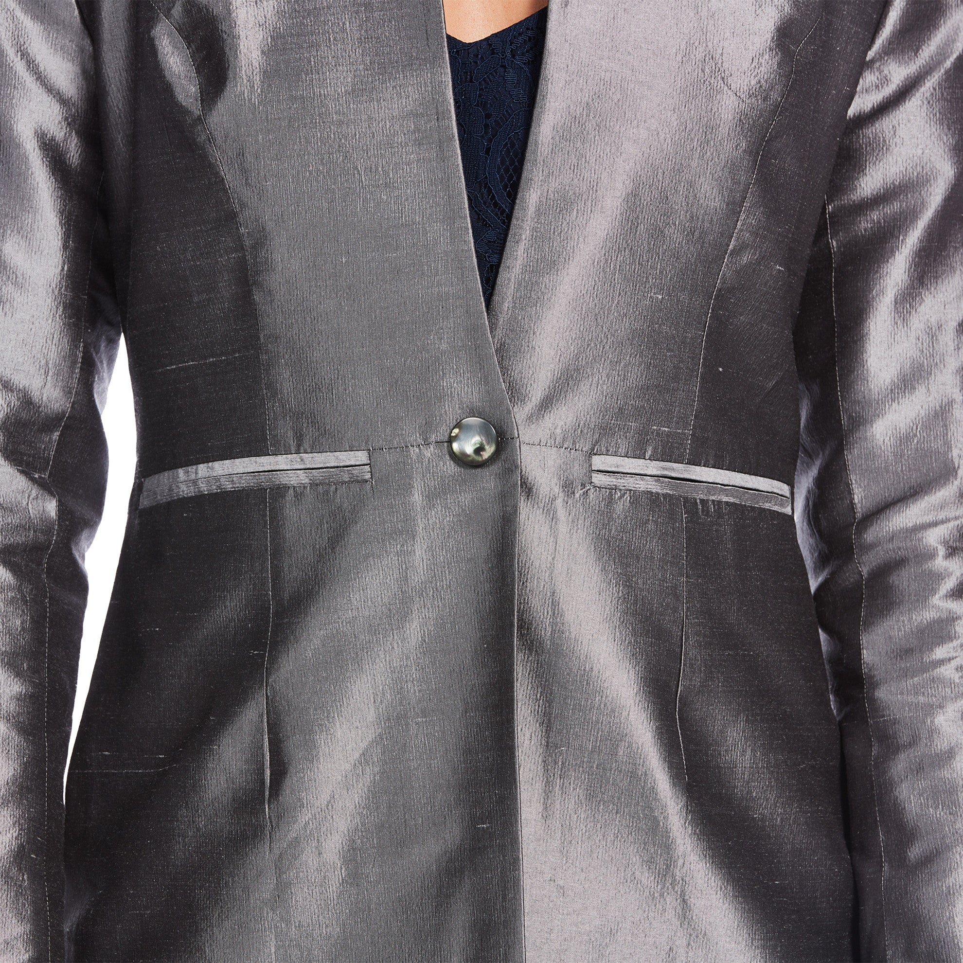 It's been happening after since we stopped focusing on going faster (no more space shuttles or Concords), which is odd since everything else we do is all about speed—faster commutes, accelerated processors, snappier chats. In this silk dupioni blazer, the respect you command will also be instantaneous.