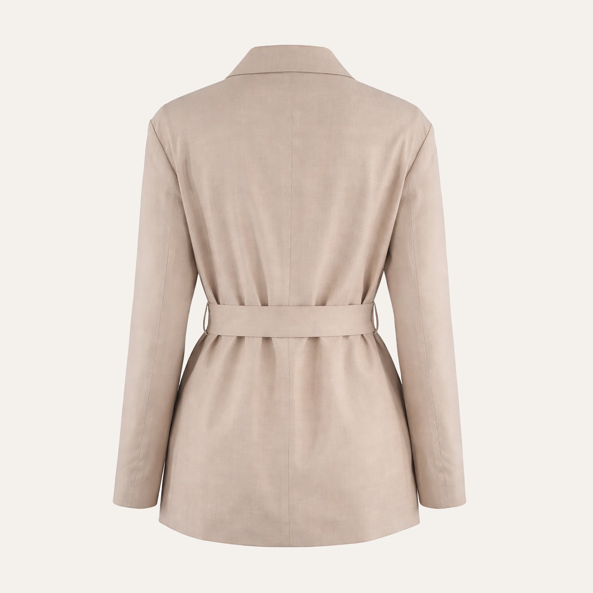 Self-Tie Wool Blazer (No. J8823). Old-world blazer fit and style with some modern, post-war accoutrement. Wonderful tropical-weight wool (270 grams). Self-fabric waist belt. Upper-thigh length. Princess seams. Imported.