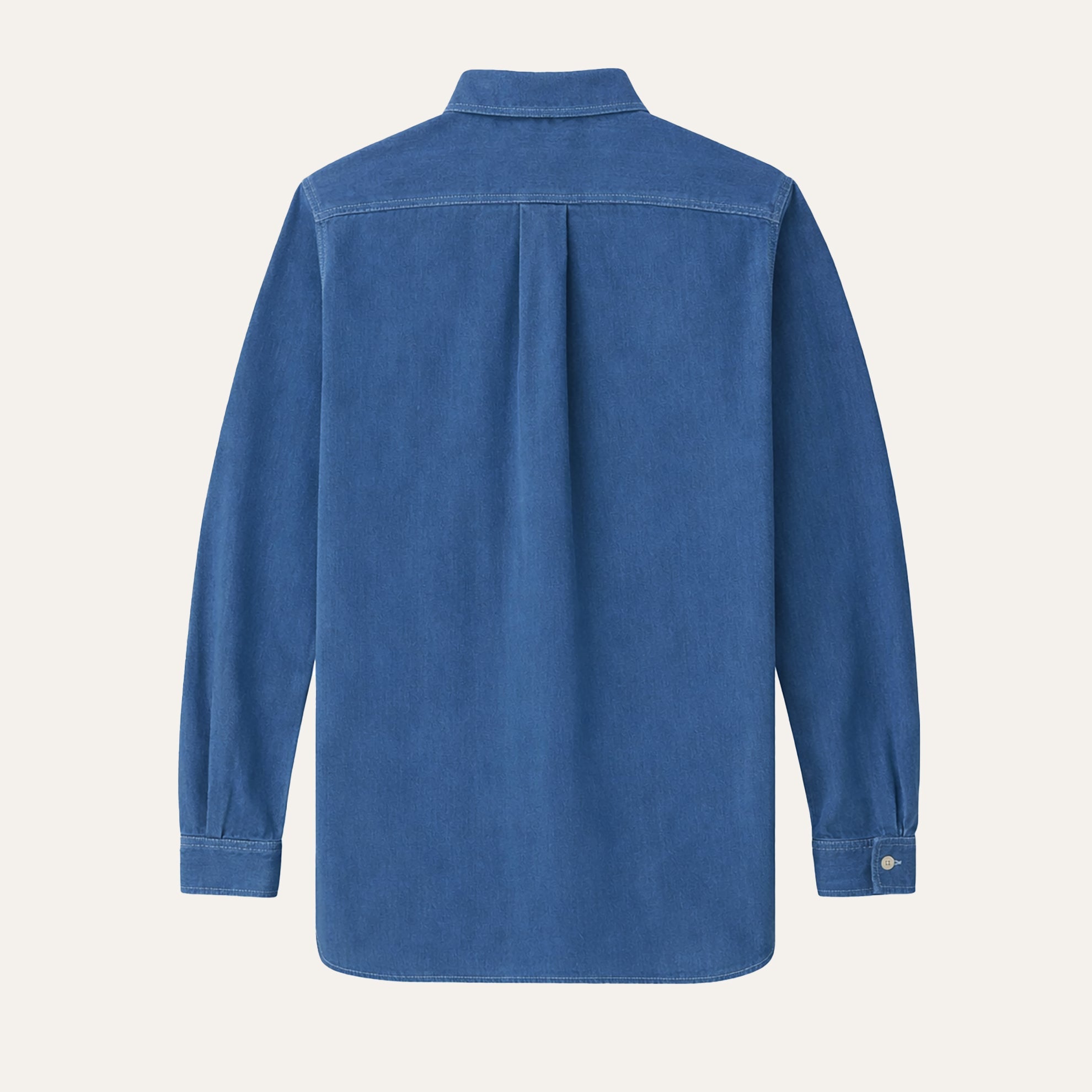 French Farmer’s Popover Shirt (No. J8713). Different and good-looking. We call this underutilized fabric “Royal Oxford” because it really deserves a spot on the textile throne. Lighter than twill, it feels like a combination of a denim shirt and an Oxford dress shirt. Rich indigo hue. Relaxed fit. 100% cotton.