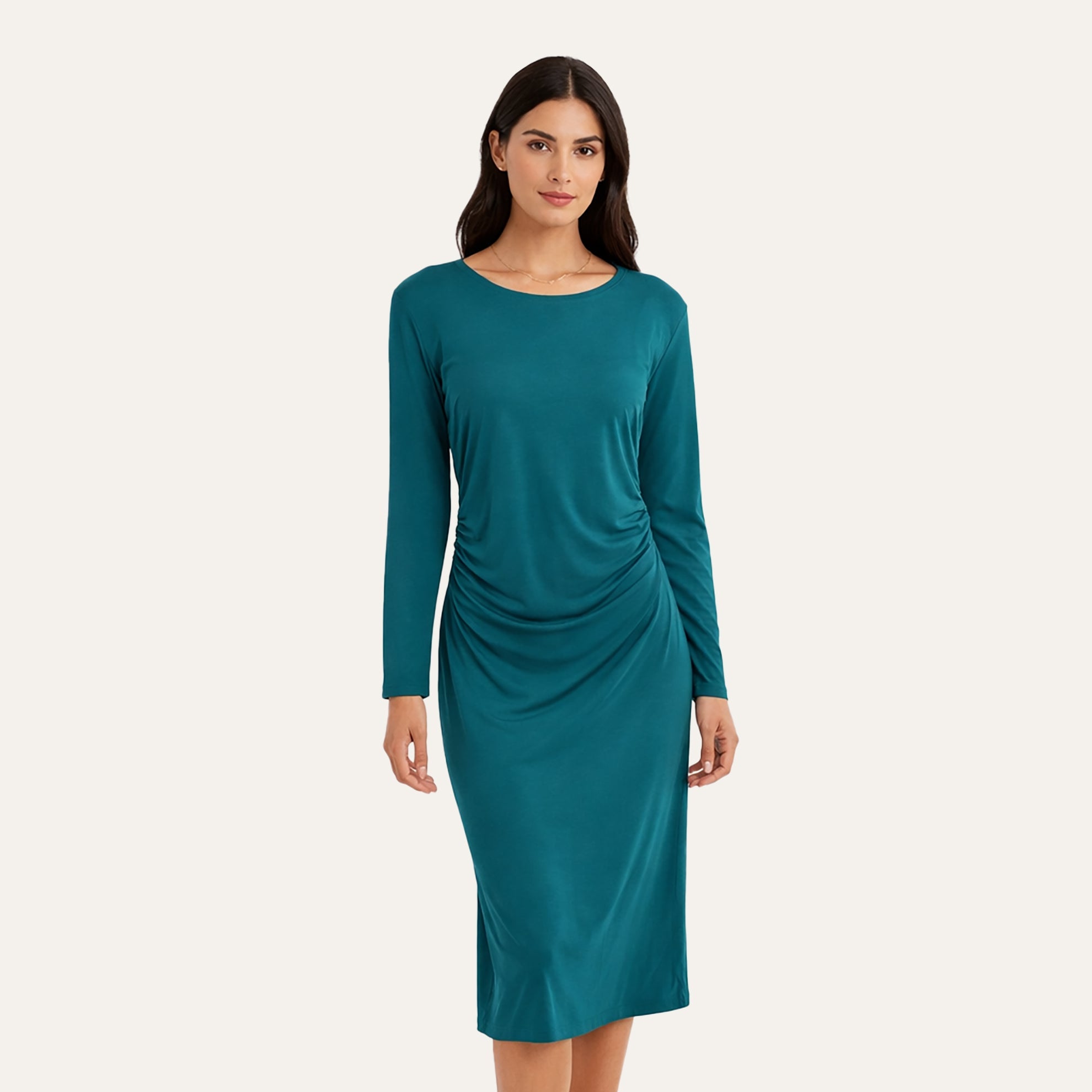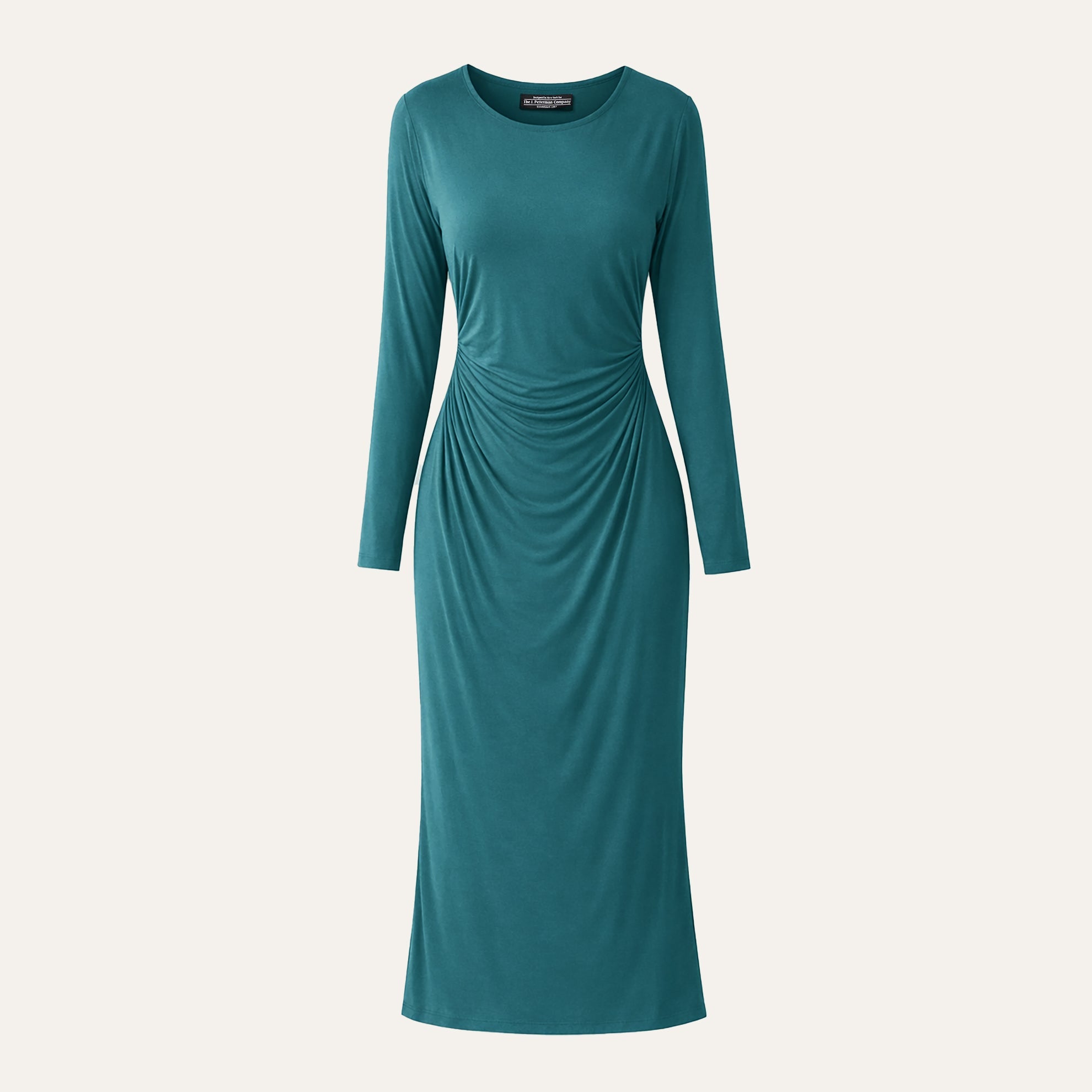 Secret Keeper Dress (No. J6489). Mesmerizing fitted sheath in substantial, flattering viscose/spandex blend. Slims and lengthens your torso, your legs. Gives shape to your derrière. To the knee. Imported.