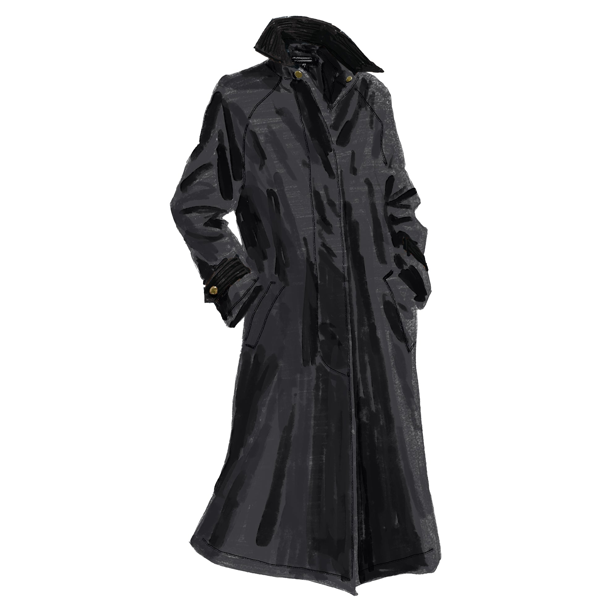 Classic Horseman’s Duster (No. J6804). High count 100% cotton canvas outer shell. 8-wale corduroy collar. Metal snaps and adjustable closures at cuffs. Two side-entry pockets. Unlined. Falls to mid-calf on most. Imported.