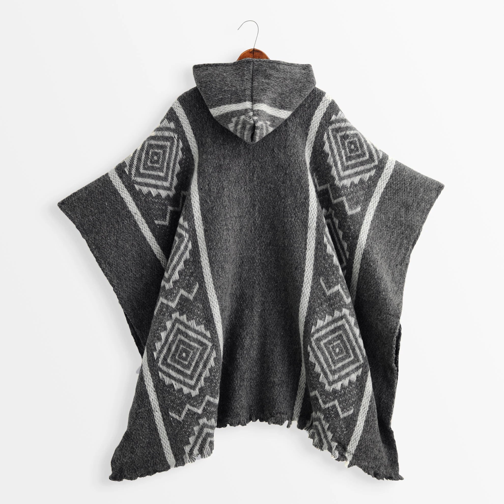 Handwoven Ecuadorian Poncho (No. J7460). Artfully handwoven unisex poncho, made of luxurious alpaca llama wool yarn. Very light, extremely soft, and warm. Luxuriously soft to touch, and won't make you feel itchy. One size.