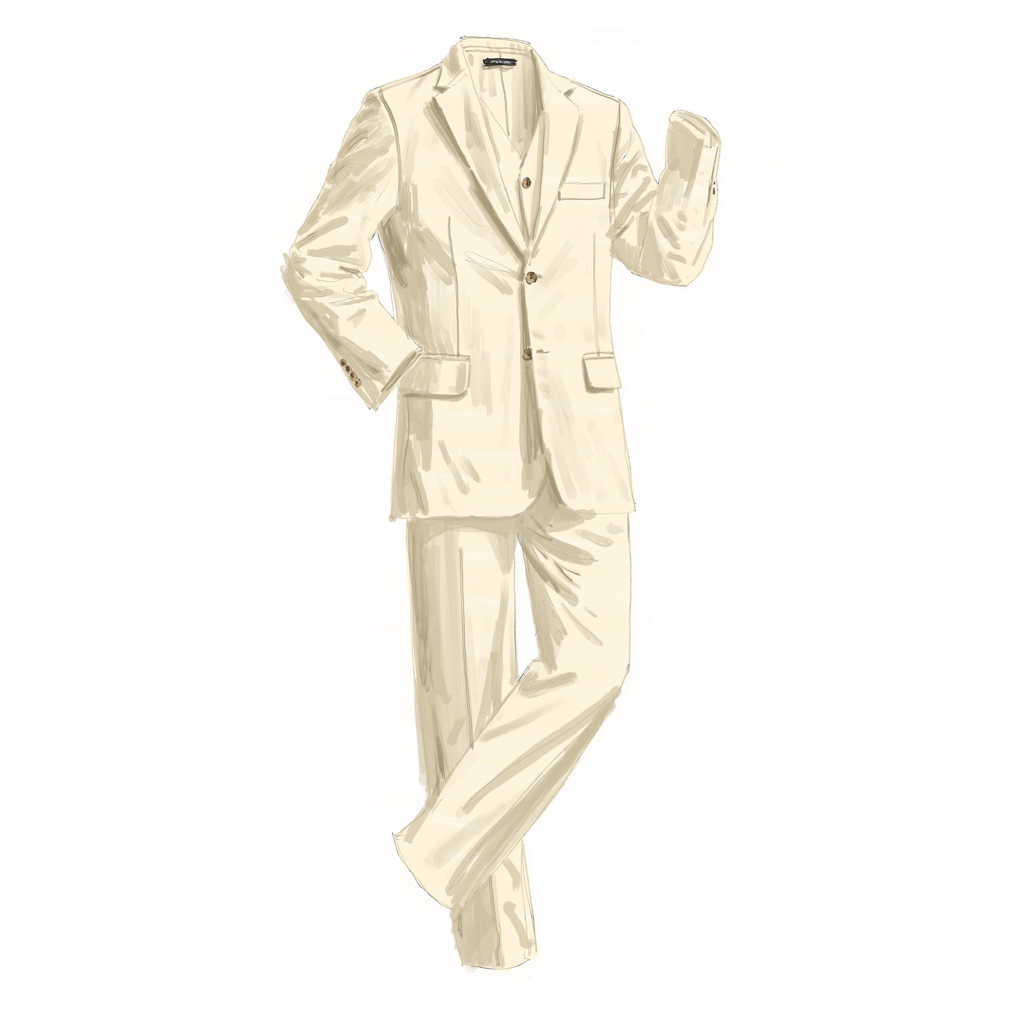 Silk & Linen Suit Jacket (No. J5670). This ultra-luxurious silk and linen blend jacket (a touch more silk than linen) has an almost wax-like finish. Superb. Angled-welt pocket at left chest, double-welt pocket with flap at each hip, and three interior pockets. Two faux horn buttons at front, four stacked buttons at sleeve cuff. Wear as an ensemble with your favorite (and most bold) tie and pocket square to make a global statement.