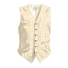 Luscious cream color with six contrasting faux horn buttons. Vertical buttonhole for pocket watch chain (no one needs one, but you should still have one).